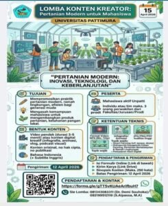 Ambon, RN today.com – Dalam upaya mendorong kreativitas dan inovasi digital di kalangan mahasiswa, Universitas Pattimura akan menggelar Lomba Desain Website Program Studi Antar Fakultas pada 21 April 2026. Kegiatan ini terbuka bagi mahasiswa aktif dari seluruh fakultas yang ingin menunjukkan kemampuan mereka dalam merancang website yang kreatif, informatif, dan inovatif.