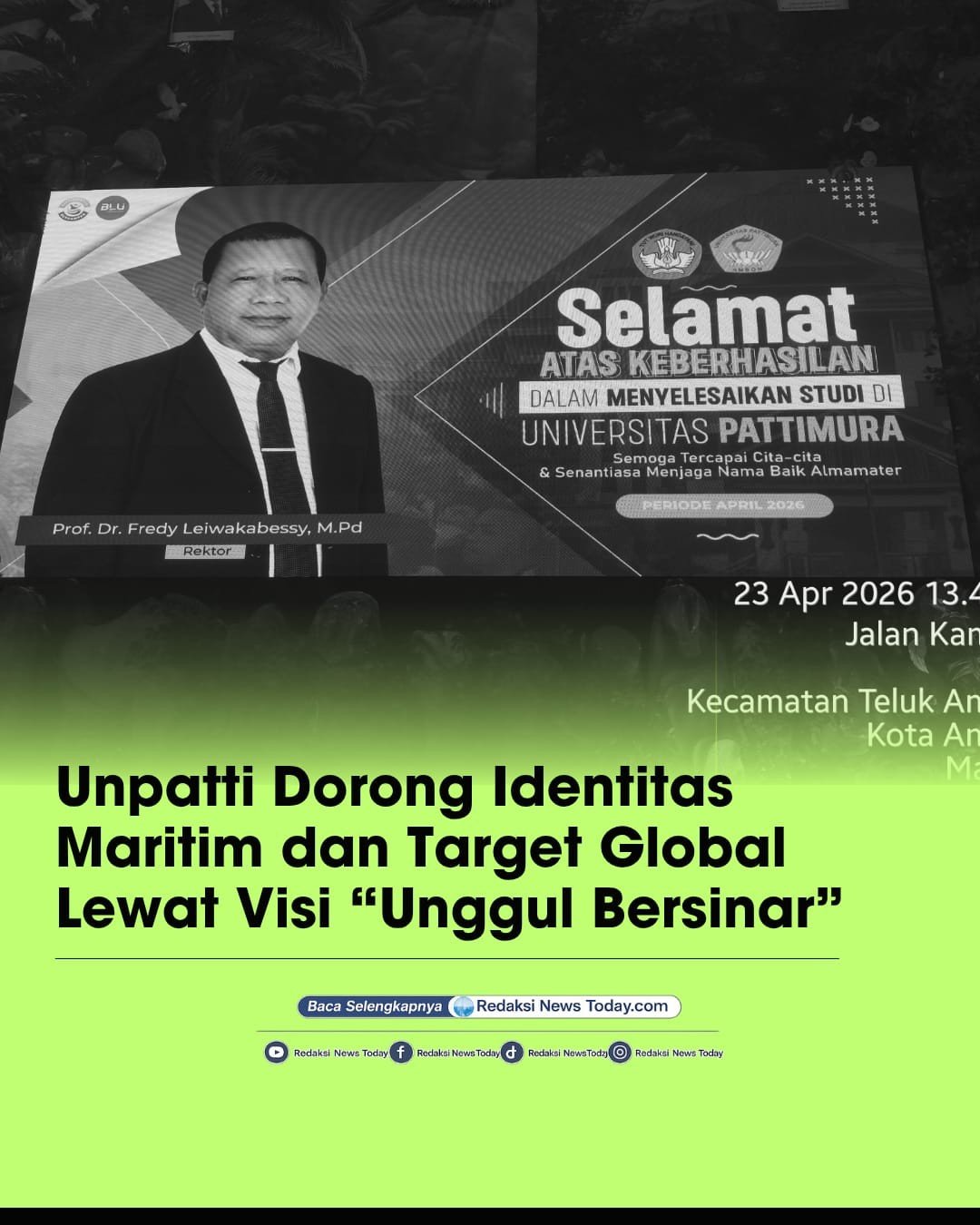 Ambon, RN Today.com – Universitas Pattimura terus memperkuat arah pembangunan institusi berbasis karakter kepulauan melalui visi besar “Unggul Bersinar Menuju World-Class University” periode 2023–2027.